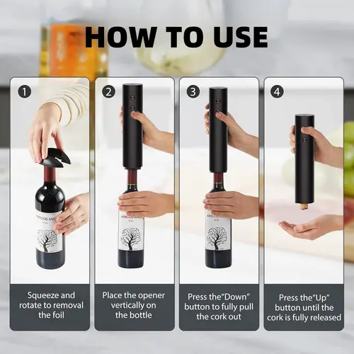 ✅Un botón, cero esfuerzo: abrí tu vino al instante.